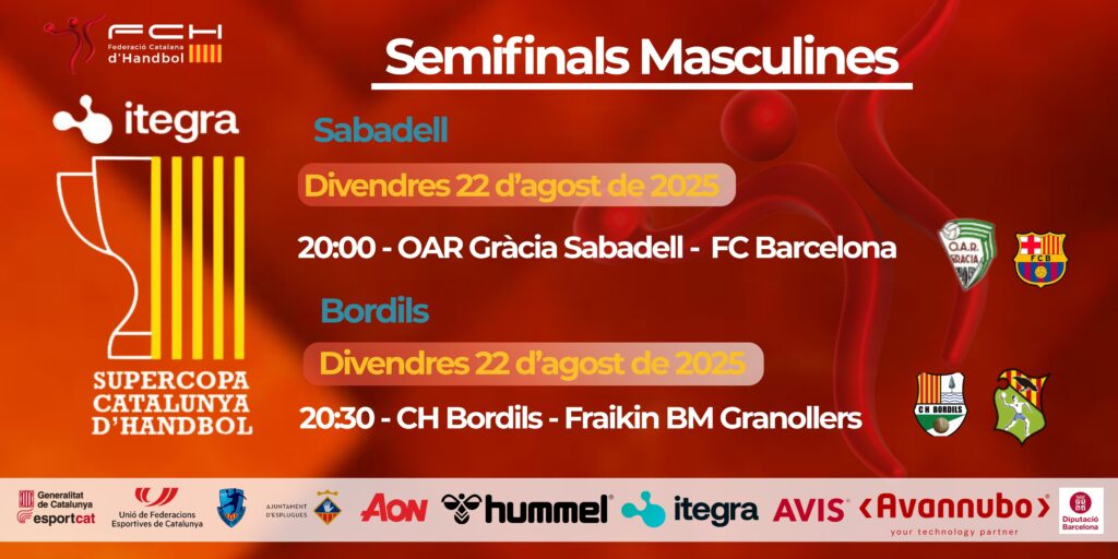 Una Supercopa de Catalunya d’Handbol ITEGRA 2025 que tindrà el seu clímax el dimarts 26 d’agost durant la disputa de les finals al Complex Esportiu Municipal de les Moreres d’Esplugues de Llobregat, Ciutat de l’Handbol Català 2024 i 2025. La final femenina es disputarà a les 18:45 de la tarda mentre que la masculina tindrà lloc a partir de les 21:00 de la nit. Tota una festa de l’handbol català que es viurà amb intensitat des del xiulet inicial de les semifinals.